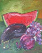 Ajax With Brush Eggplant With Onion Five Strawberries Broccoli With Wine